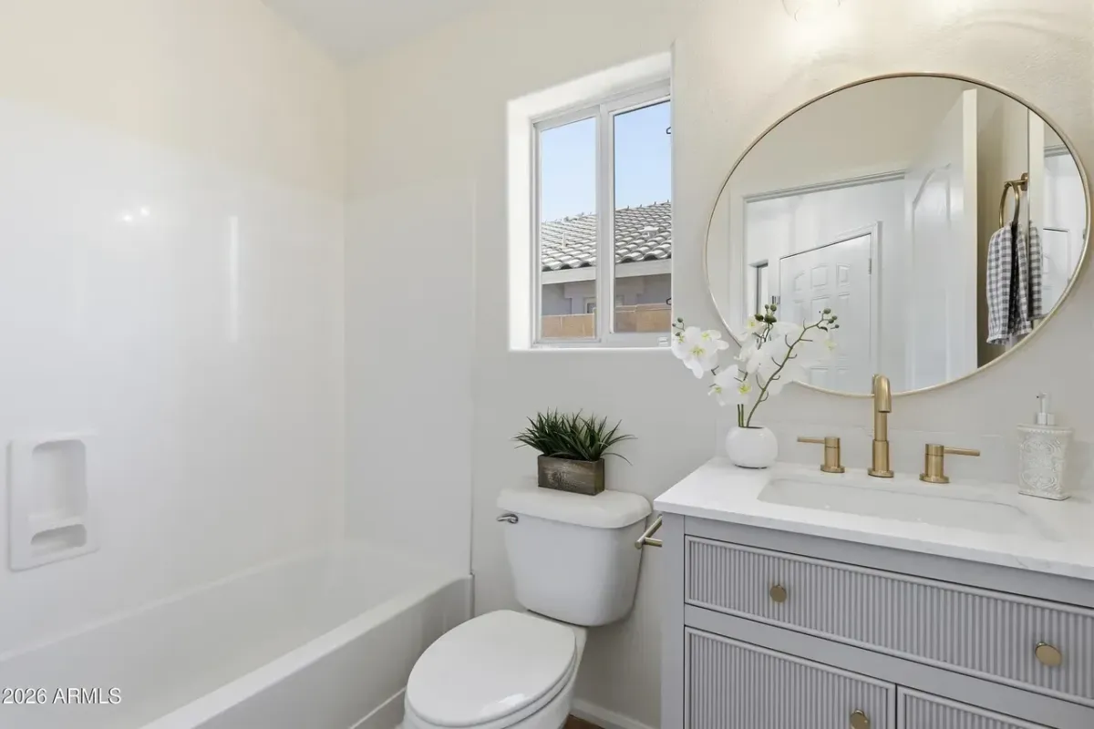 Spacious single-family home featuring 5 bedrooms and 3 full bathrooms with a flexible floor plan designed for comfortable living. The home includes a downstairs bedroom and a generous upstairs loft, offering versatile space for guests, work, or relaxation. The primary suite features a walk-in closet, dual vanities, and a separate tub and shower.