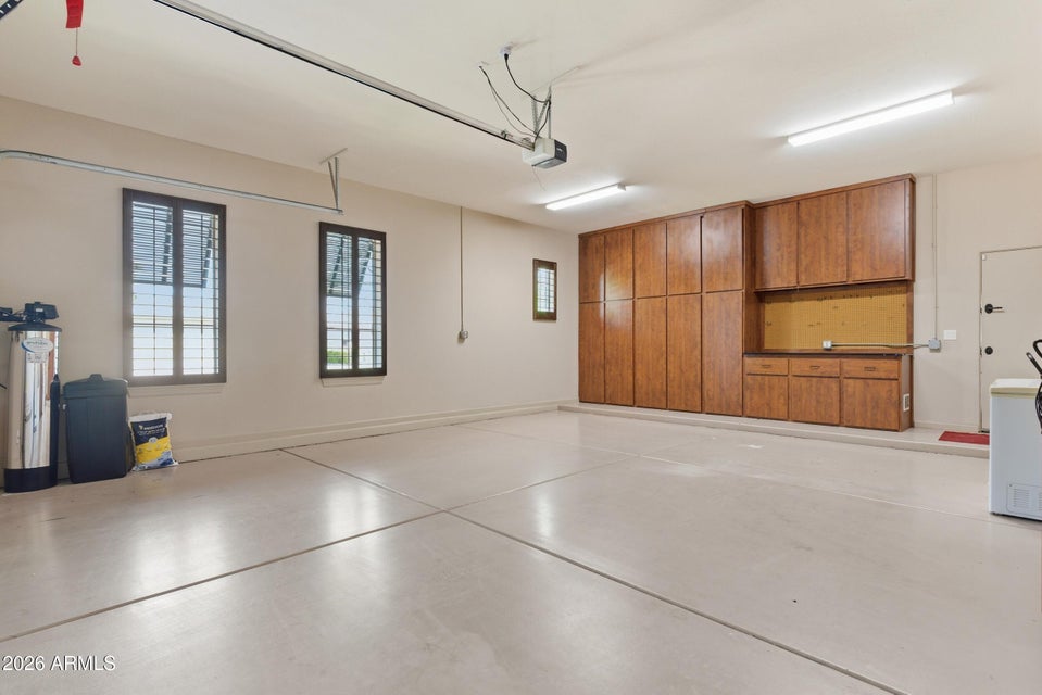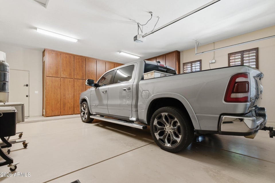 Additional features include a central vacuum system with kitchen toe kick sweep, custom cabinetry in the hallway and laundry room, and two separate two car garages with built in cabinetry. Both garage bays provide direct access to the home and backyard, adding convenience and flexibility for daily living and entertaining.
